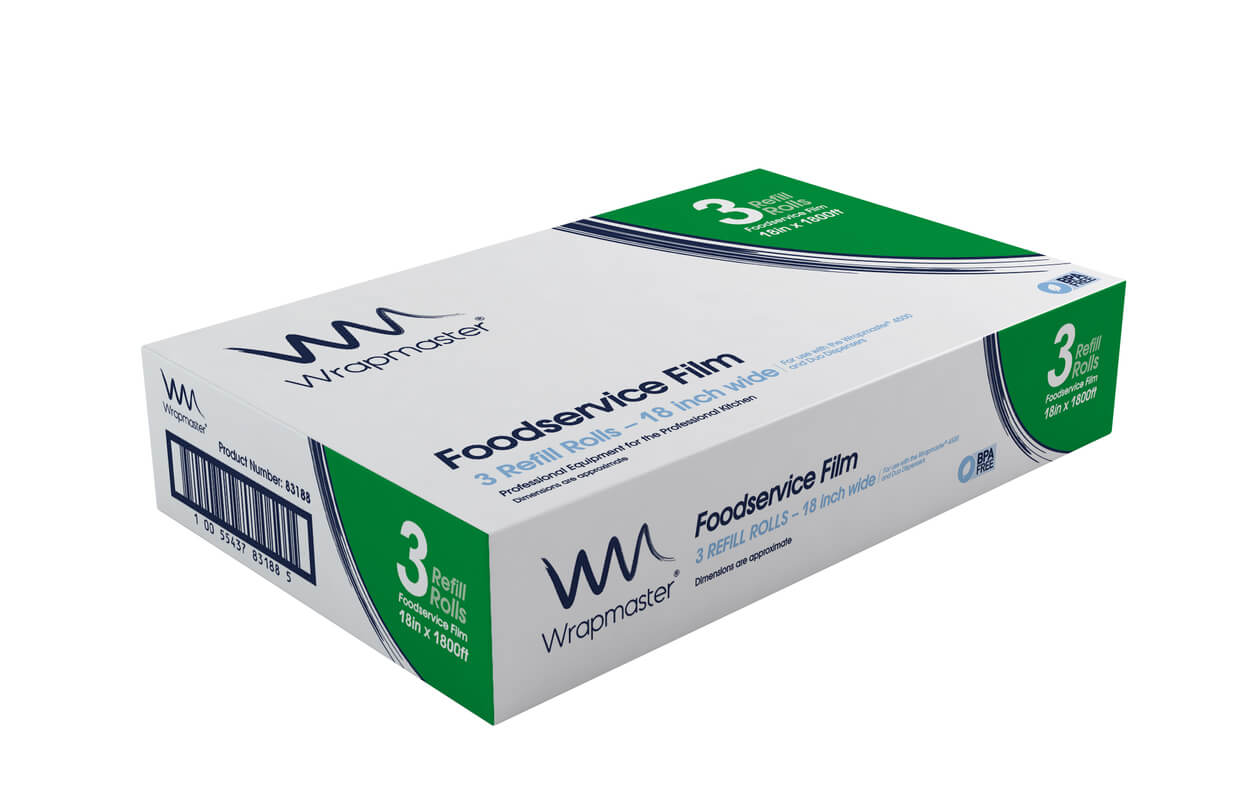 Keep food fresh with the Wrap Master 4500 clingfilm. Each roll measures 18 inches (45 cm) wide and 50 m long, offering a strong, stretchable, and easy-to-use wrap for home or professional kitchens. This pack of three ensures long-lasting convenience for everyday food storage and preparation. Box contains 3 rolls.